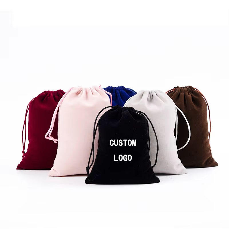 Custom Velvet Fabric Pouches Drawstring Bag Suede Pouch Bundle Pocket Jewelry Packaging Gift Bags Wholesale